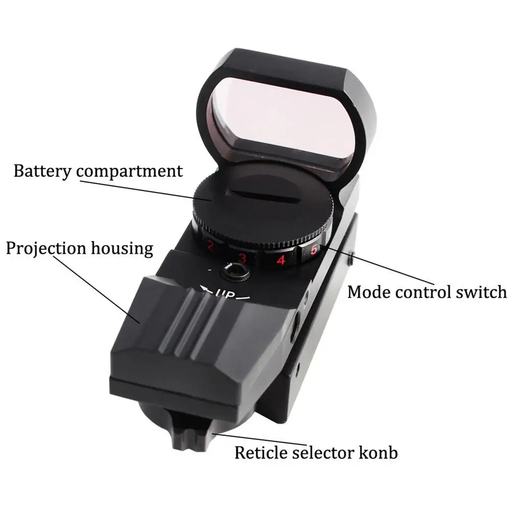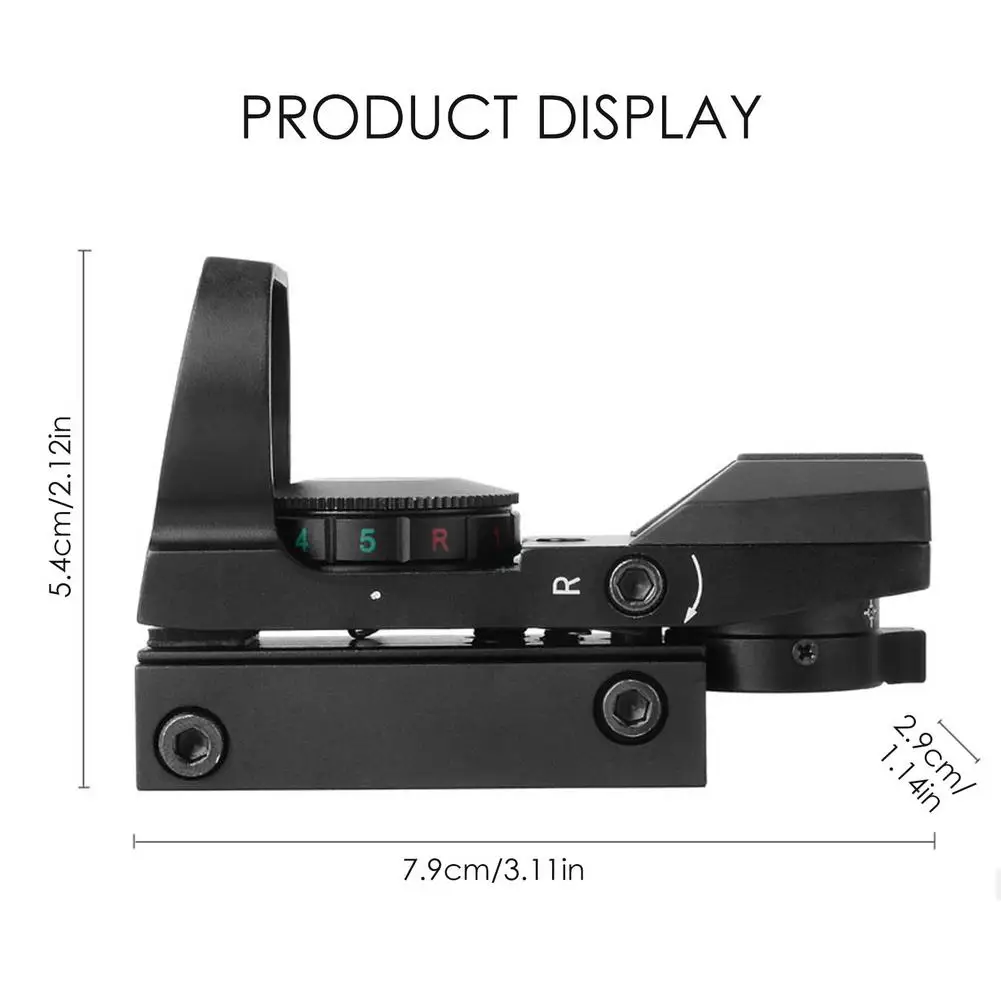 2、4 Different Styles: The reticle allows for 4 different styles, 5 adjustable brightness you can get clear and bright reticle in most light condition. Red/green illumination,with about 11mm/0.43 inch, about 22mm/0.87inch weaver/picatinny rail mount.